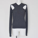 16.5Micronの非常に細く、柔らかいイタリアメーカーのウール素材を使用。胸上から、肩にかけてトライアングルのカッティングが特徴のデザイン。