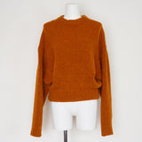 Baby Alpaca, Merino Woolを主にしたペルー産の素材を使用しています。ふわりとした膨らみが特徴の素材です。前見頃はラウンド形に直線パーツをリンキングする事で丸みのあるシルエットを表現しています。バラクラバは同素材で立体的に作られ、マフラーが後ろで付いています。