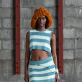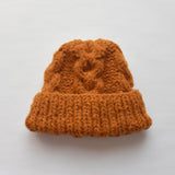 Baby Alpaca, Merino Woolを主にしたペルー産の素材を使用しています。ふわりとした膨らみが特徴の素材です。糸の軽さを利用した、ビックハンドニットのハット。ボリューム感が特徴。