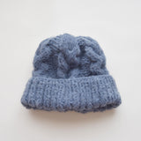 Baby Alpaca, Merino Woolを主にしたペルー産の素材を使用しています。ふわりとした膨らみが特徴の素材です。糸の軽さを利用した、ビックハンドニットのハット。ボリューム感が特徴。