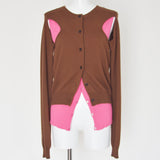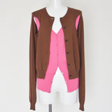 Superior Cotton 85%, Cashmere 15%のイタリアメーカーの糸を使用しています。カーディガンの下にベストを重ね着している様なイミテーションニットカーディガン。下のベスト部分はリングスナップ開きの仕様になっています。
