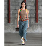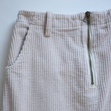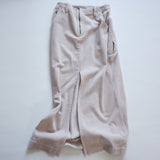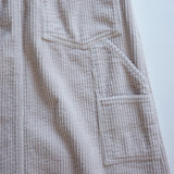 コーデュロイを製品染めしたシリーズ。フロントファスナーが見えるデザイン。ワークパンツを着想源にハンマーループ、サイドポケットが特徴。フロントスリット開き。