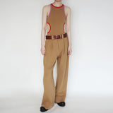 程よい厚みのダンボール素材を使用。ウエストはゴム仕様でさらにウエスト裏にはヒモで絞れる仕様になっています。