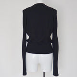 ESSENTIAL LINE : コットンにカシミアが15%入った柔らかな風合いの糸を使用。リブ編みと天竺を配置し、シルエットを作っています。