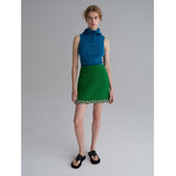 イタリアメーカーのスーピマコットンを使用しています。太番手の糸をクロシェ編みで仕上げています。ミニ丈のスカートに裾にはハンドによって施された、ウッドビーズがあしらわれています。